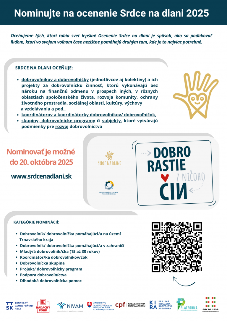 Ešte do budúceho pondelka, t. j. do 20. októbra polnoci, máte možnosť navrhnúť na ocenenie Srdce na dlani 2025 v…
