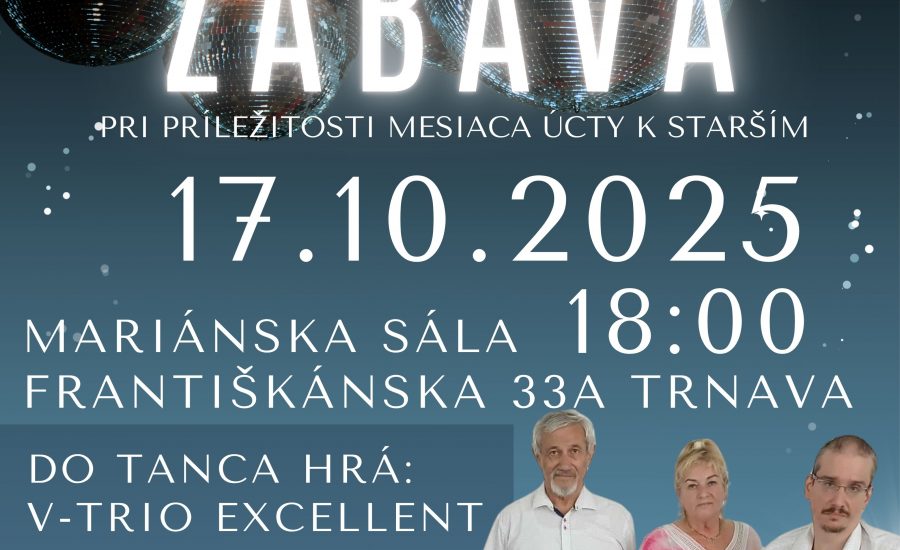 Pri príležitosti mesiaca október, ktorý je mesiacom úcty k starším, aj Občianske združenie Mariánska sála v spolupráci s Centrom pomoci pre rodinu organizuje spoločenské podujatie.