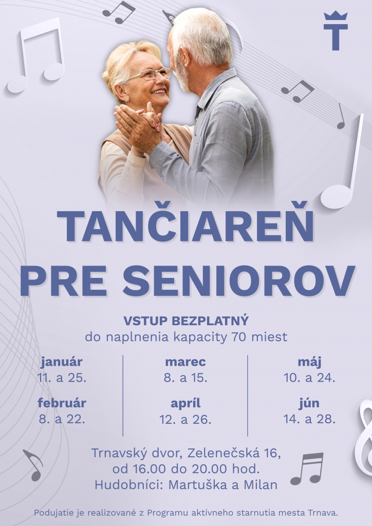 So zámerom podporovať aktívny život seniorov Mesto Trnava v spolupráci so seniorskými dennými centrami dvakrát v mesiaci organizuje Tančiareň pre seniorov. Podujatie sa koná už tradične v nedeľné popoludnia v sále Trnavského dvora. Kapacita priestorov je 70 miest, vstup je bezplatný.