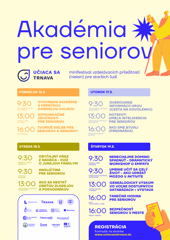 Podujatie je bezplatné, stačí sa vopred registrovať na tomto odkaze: Registrácia na Akadémiu pre seniorov.